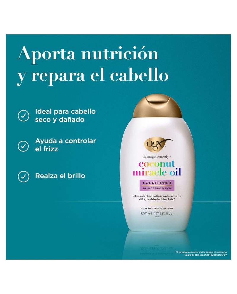Repara y revitaliza tus sentidos y tu cabello con este acondicionador de aceite de coco. Ideal para cabello seco, áspero o con frizz, el acondicionador hidratante ayuda a controlar los cabellos sueltos mientras realza la suavidad natural.