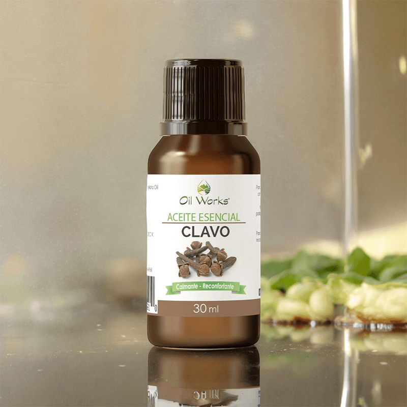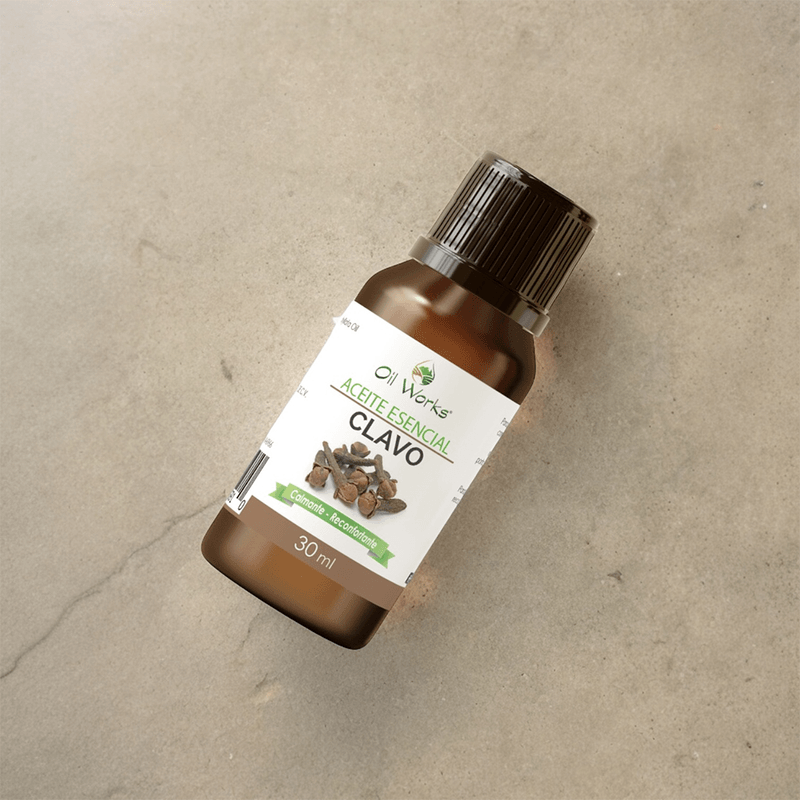 1-Propiedades analgésicas: El clavo tiene propiedades analgésicas que pueden ayudar a aliviar el dolor muscular, dolor de dientes y encías, así como dolores de cabeza. Es comúnmente utilizado en odontología para aliviar el dolor dental. 2-Propiedades antibacterianas y antisépticas: Este aceite esencial es efectivo contra bacterias y microorganismos, lo que lo hace útil para desinfectar heridas menores y cortes. También puede ayudar a prevenir infecciones cutáneas. 3-Antiinflamatorio: El aceite esencial de clavo tiene propiedades antiinflamatorias que pueden ayudar a reducir la inflamación y el dolor asociado con condiciones como artritis y otros trastornos inflamatorios.
