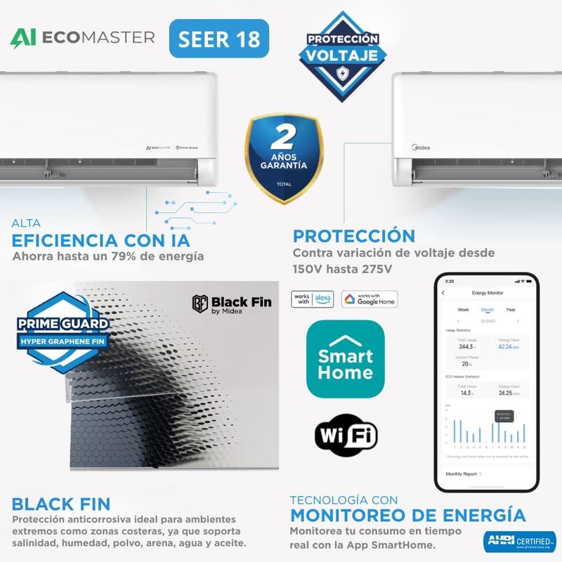 Aire Acondicionado Inteligencia Artificial Inverter SEER 18 12,000 BTU 220V Midea