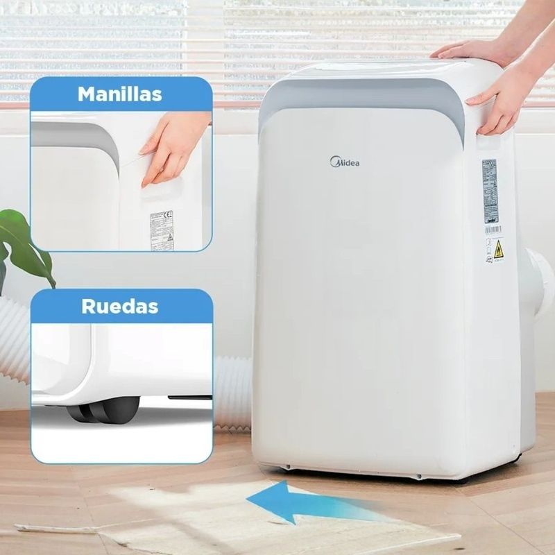 El aire acondicionado portátil Midea de 10,000 BTU de capacidad y un atractivo diseño. Con operación silenciosa. Posee refrigerante ecológico R32 que cuida la capa de ozono, de fácil instalación y uso.