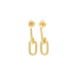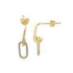 Elegantes aretes de colgar que combinan la sofisticación ofreciendo un estilo moderno con un diseño elaborado en plata con baño de oro, es un colgante en forma ovalada. Añade un toque único y delicado a tus outfits. Su diseño de cierre de presión brinda seguridad y comodidad al usarlos.