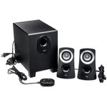 Logitech Z313 – Sistema de Bocinas 2.1 (3 en 1) 50W RMS Disfruta de un sonido claro y potente con el sistema de bocinas Logitech Z313. Este set incluye dos altavoces satélites y un subwoofer compacto que juntos entregan 50W RMS, ideales para música, películas y juegos. Su diseño sencillo permite una instalación rápida y su control de volumen con cable facilita el manejo sin complicaciones. Con una entrada de 3.5 mm, es compatible con PC, laptops, televisores y dispositivos móviles. Además, cuenta con salida para audífonos, lo que lo hace versátil para uso personal o compartido. El subwoofer ofrece graves profundos mientras que los satélites brindan agudos claros, logrando un equilibrio perfecto para cualquier tipo de contenido.