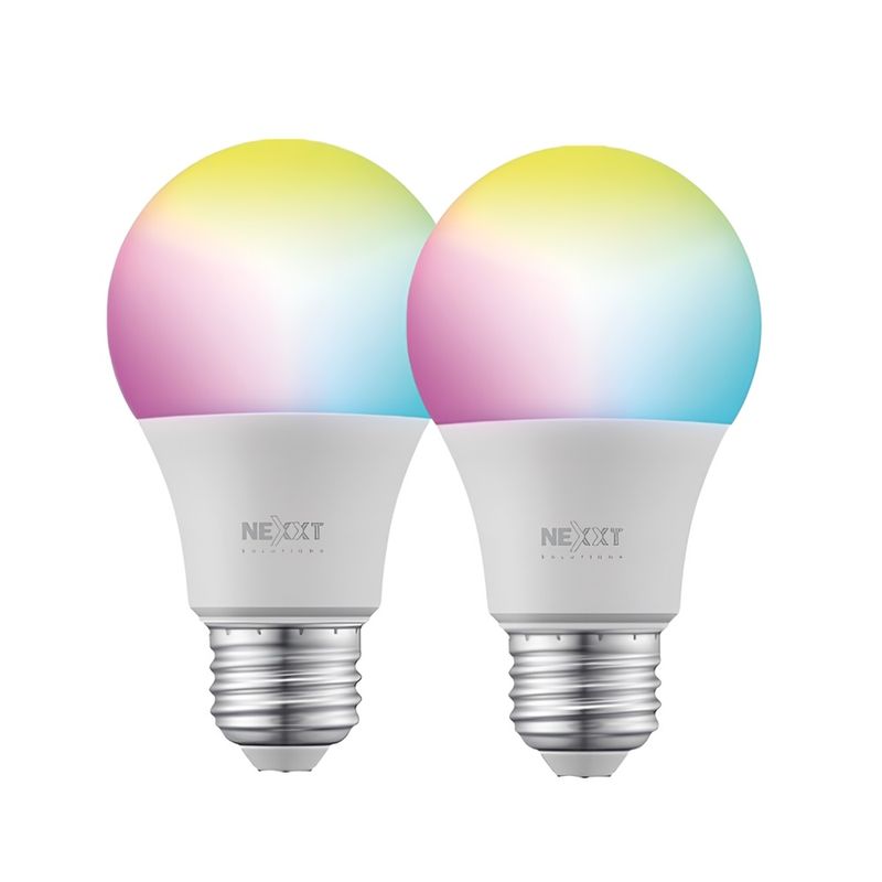 pack de 2 focos inteligentes NHB-C1102PK de Nexxt Solutions. Con tecnología WiFi y compatibilidad con asistentes de voz, estos focos te permiten personalizar la iluminación de tus ambientes con solo un comando o desde tu celular, creando atmósferas únicas para cada momento del día.