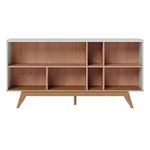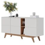 El Buffet Noronha tiene un diseño contemporáneo con pies retro en madera maciza. Además dispone de tres puertas con detalles biselados con pintura PU sin tiradores mediante sistema de cierre táctil. El producto también cuenta con estantes internos reforzados para colocar sus tazones y vajillas. También cuenta con hornacinas decorativas en tono amaderado, ideales para decoración y libros. Con una tapa de 25 mm, el Buffet Noronha permite disponer objetos en su superficie, ideal para servir cenas en casa.
