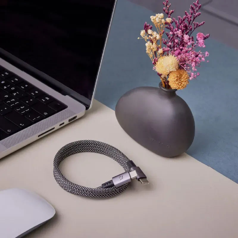A diferencia de cables convencionales, incorpora imanes de goma suave que combinan resistencia a la corrosión con una notable elasticidad, flexibilidad y capacidad de estiramiento. Esto lo convierte en un cable fácil de almacenar y altamente duradero, perfecto para el uso diario en cualquier entorno.