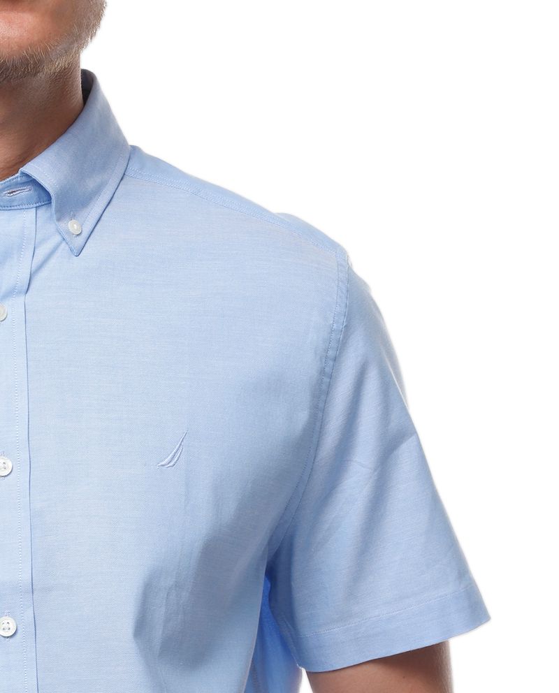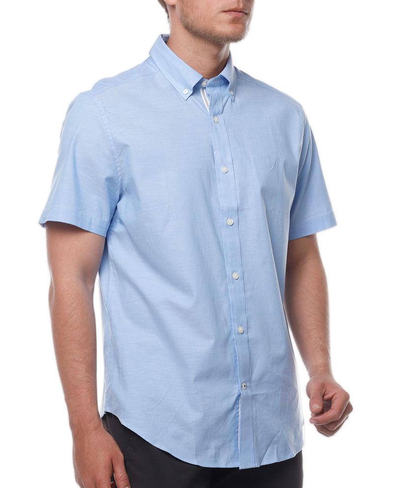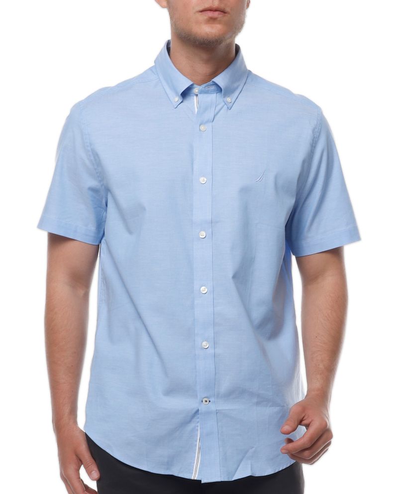Camisa estilo casual marca Nautica, en color celeste con diseño sólido, detalle de bordado al costado izquierdo alusivo a la marca. Cierre de botones al centro, manga corta y cuello americano. El complemento ideal para lucir un estilo casual y moderno. Puedes combinar esta prenda según la ocasión con unos pantalones chinos para un look casual o con unos shorts para un estilo relajado, tejido stretch que ofrece mayor comodidad y libertad de movimiento al usar.