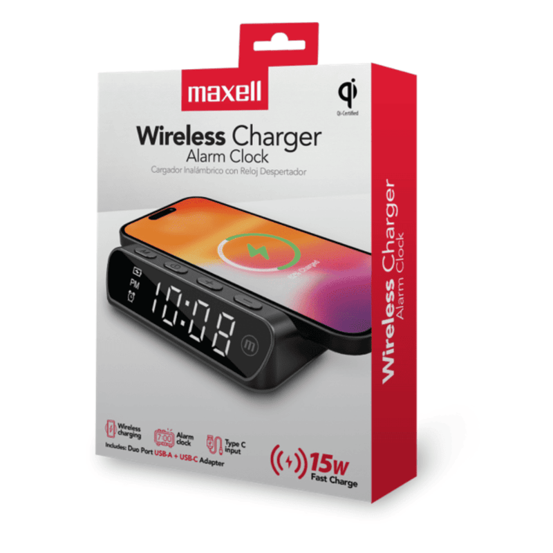 El Maxell QIAC-115 es un práctico cargador inalámbrico diseñado para ofrecer comodidad y funcionalidad en un solo dispositivo. Incorpora un reloj digital con función de alarma, ideal para colocarlo en tu mesa de noche, escritorio u oficina. Su diseño moderno y compacto lo convierte en una solución perfecta para mantener tu teléfono cargado mientras llevas control del tiempo.