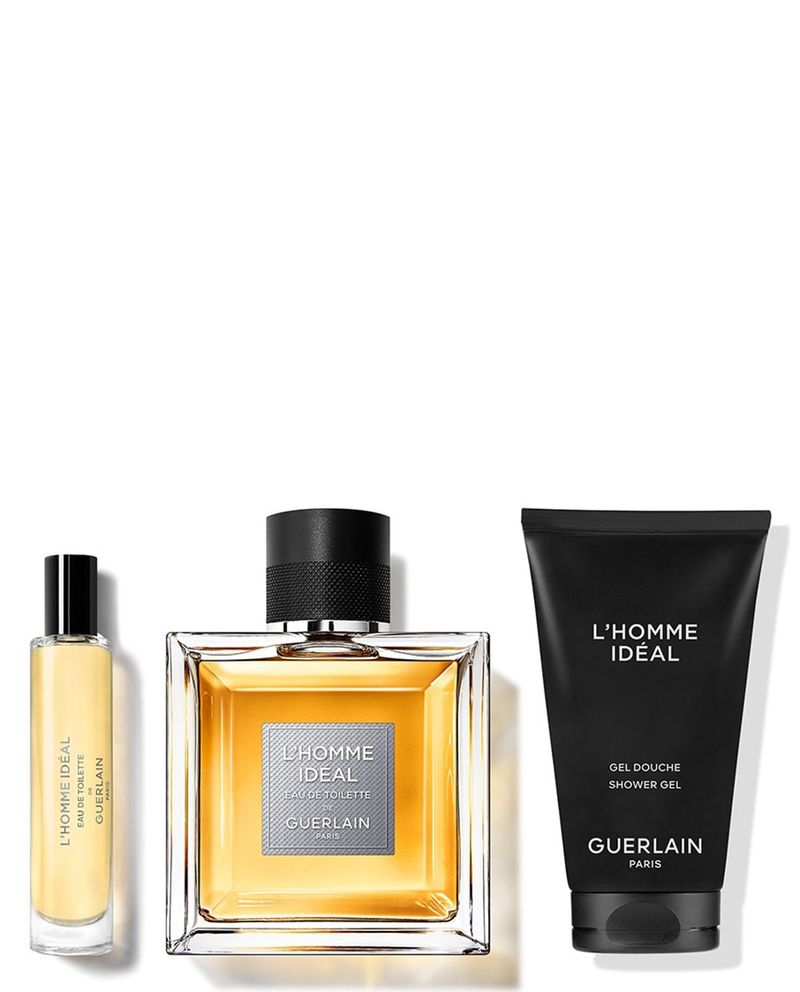 El estuche de regalo Eau de Toilette L’Homme Idéal de Guerlain incluye el Eau de Toilette L'Homme Idéal, que presenta una fragancia con notas de almendra, amaretto, cítricos, plantas aromáticas, pachulí y un toque de cuero. También incluye un gel de ducha L’Homme Idéal que deja la piel suave y perfumada.