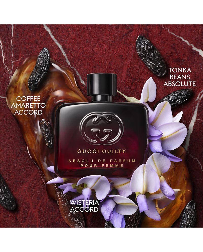 El frasco rojo oscuro de esta fragancia de Gucci revela un aroma absolutamente Guilty hecho para una mujer fuerte, segura y sensual que abraza la tentación.