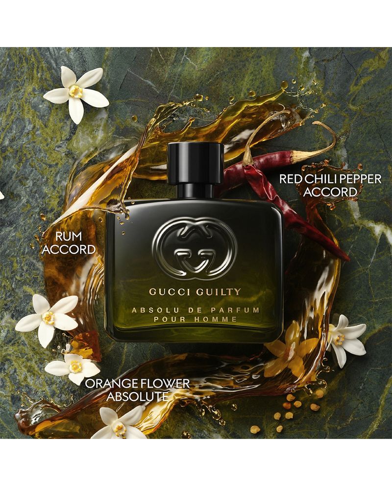 Guilty Absolu de Parfum Pour Homme es un ensamblaje intenso de ámbar amaderado curado como un placer culpable. En su corazón, el acorde de ron aporta un aroma cálido que evoca el sabor facetado de un fino licor añejo. Suavemente mezclado con el absoluto de flor de naranja sulfuroso, aporta sustancia a la composición, mientras que el ardiente acorde de chile rojo la condimenta. El resultado es un perfume para hombres que dura horas: una inyección de sofisticación, sensualidad y misterio que es perfecto para cualquier ocasión, especialmente una salida nocturna en la tenue luz de un espacio íntimo.