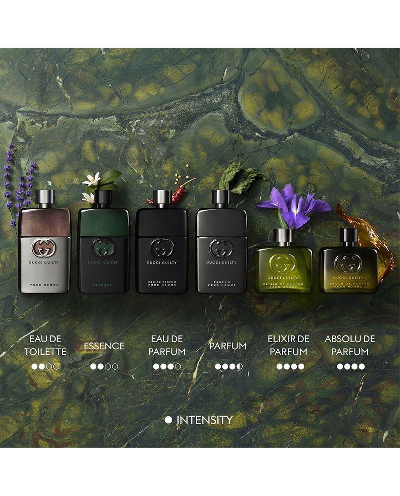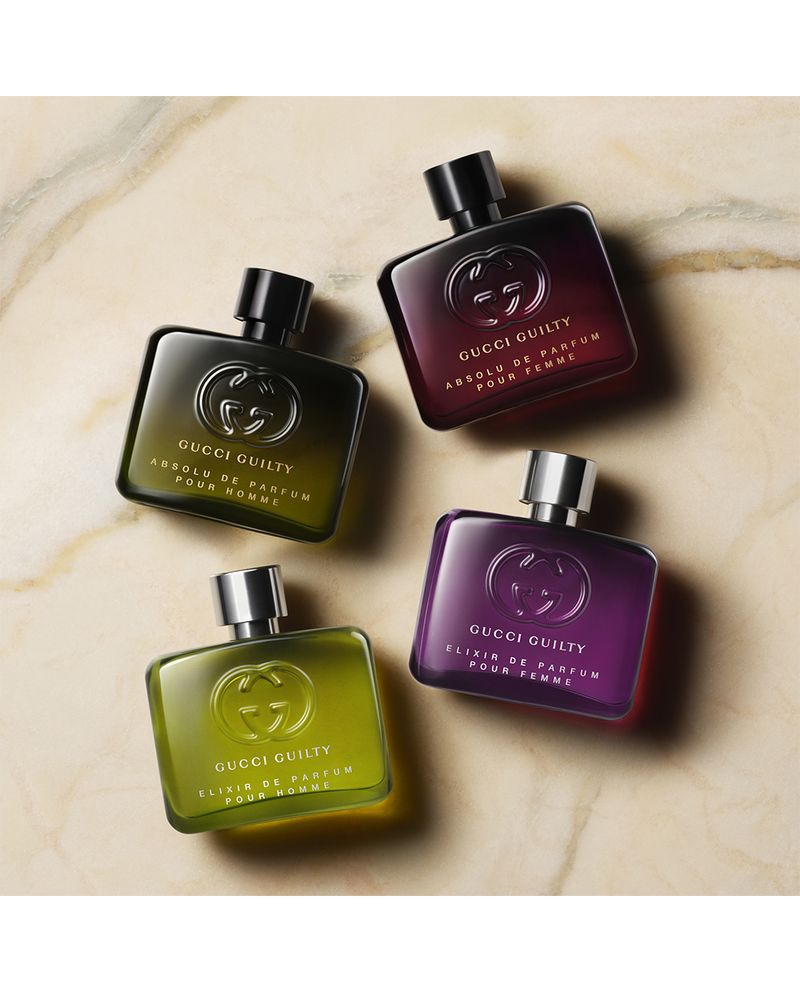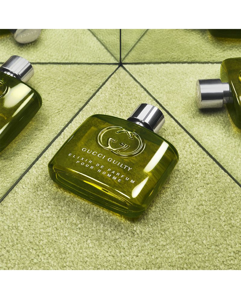 Los Elixires de Parfum Guilty son una afirmación audaz, una extroversión llena de color. Gucci Guilty Elixir de Parfum para hombre es una fragancia ambarina coriácea. Esta irresistible fragancia presenta una sensual base de vainillina y Ambrofix, un corazón extravagante de mantequilla de lirio y una nota de salida ahumada de nuez moscada.