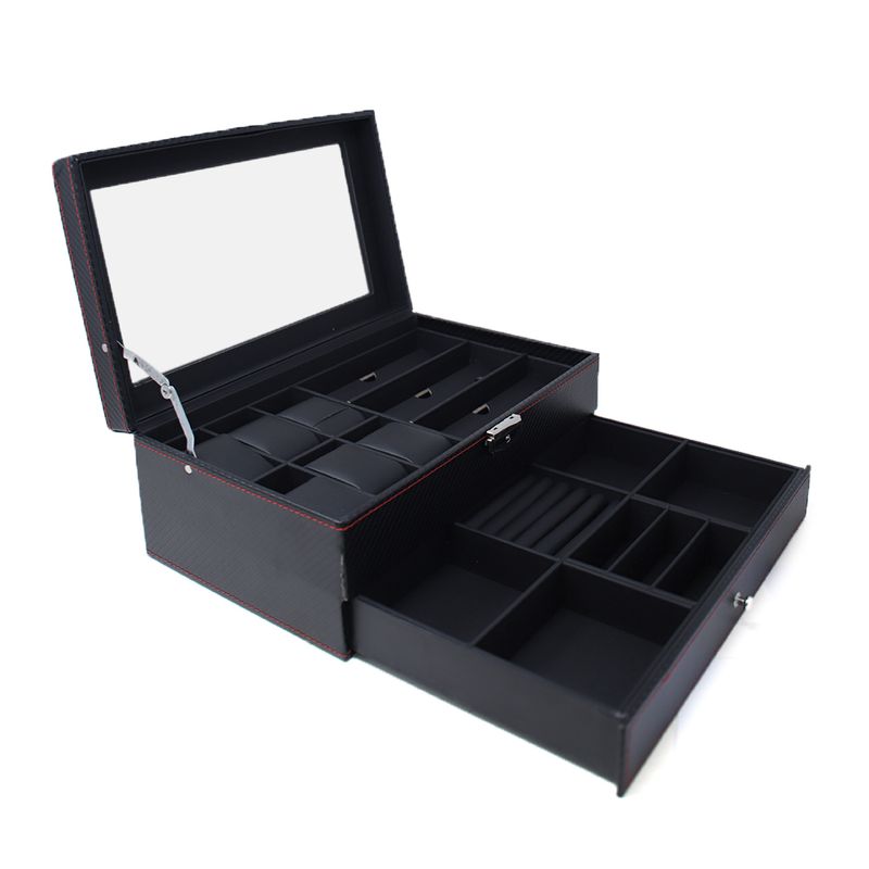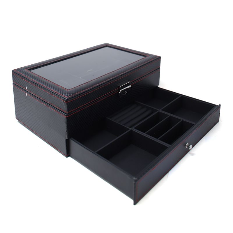 Organiza y protege tus accesorios más preciados con este elegante joyero diseñado especialmente para relojes, lentes y joyas. Con múltiples compartimientos y un diseño sofisticado, es la solución perfecta para mantener tus artículos personales bien organizados y accesibles, ya sea en casa o de viaje.