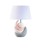 Añade un toque de estilo y calidez a tus espacios con esta lámpara de mesa de cerámica en tonos gris y rosado, complementada con una pantalla de tela blanca que aporta una iluminación suave y acogedora.