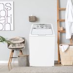 Sistema de lavado con agitador, tapa metálica con seguro, panel con 3 perillas, 5 tamaños de carga, sensor de carga, 11 ciclos automáticos, despachador de blanqueador