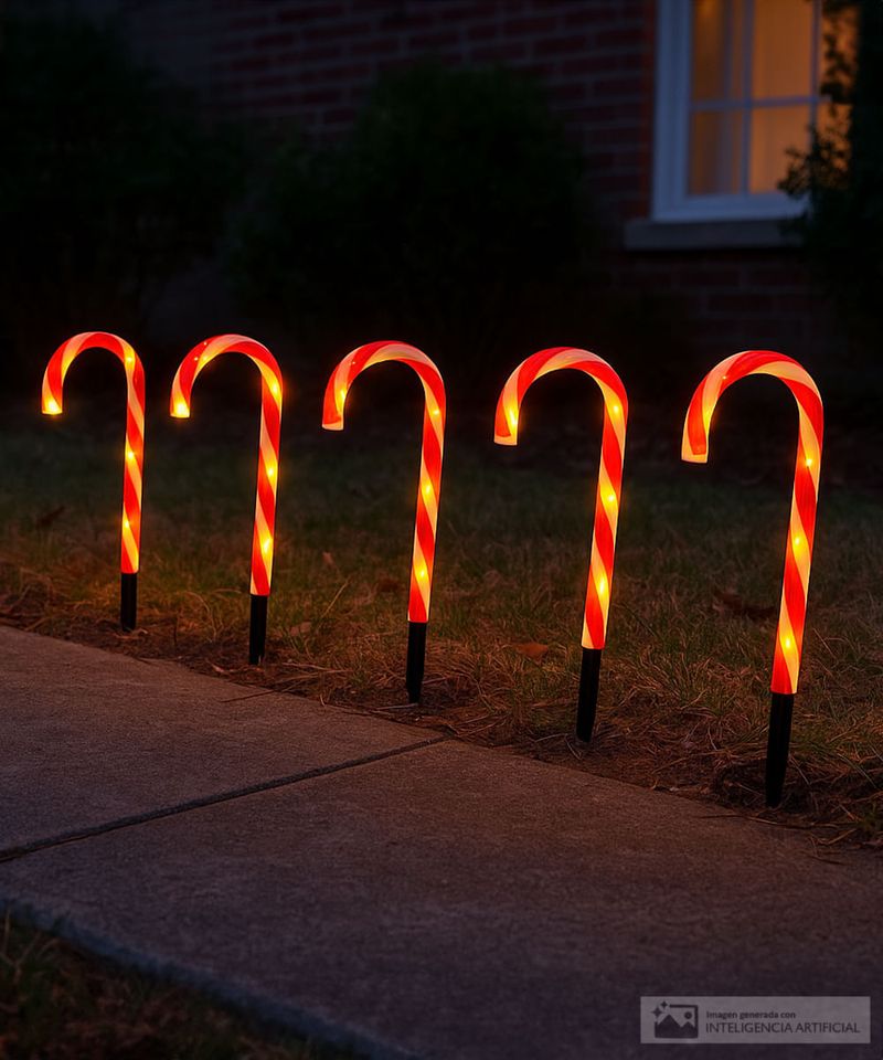 Luces navideñas con diseño de bastón de dulce.