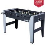 Amplio campo de juego reglamentario para jugar durante horas de diversión. Barras de jugador de acero huecas cromadas de 8-15.8 mm de diámetro; incluye balones de fútbol sólidos de 4-36 mm. 26 jugadores individuales moldeados; empuñaduras ergonómicas para un uso cómodo.