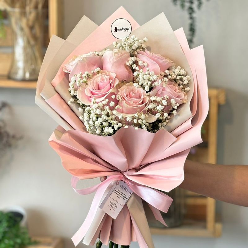 6 ROSAS ROSADAS Y BABY