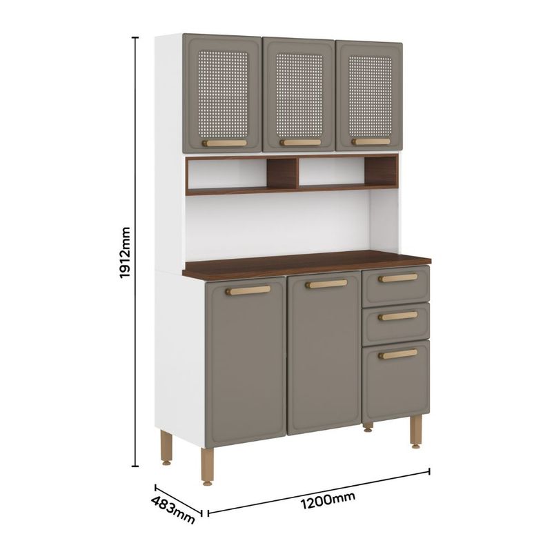 Mueble de cocina 6 Puertas/3 cajones Pecan Alto 191.2cm x ancho 120cm x profundidad 48.3cm
