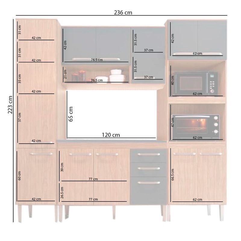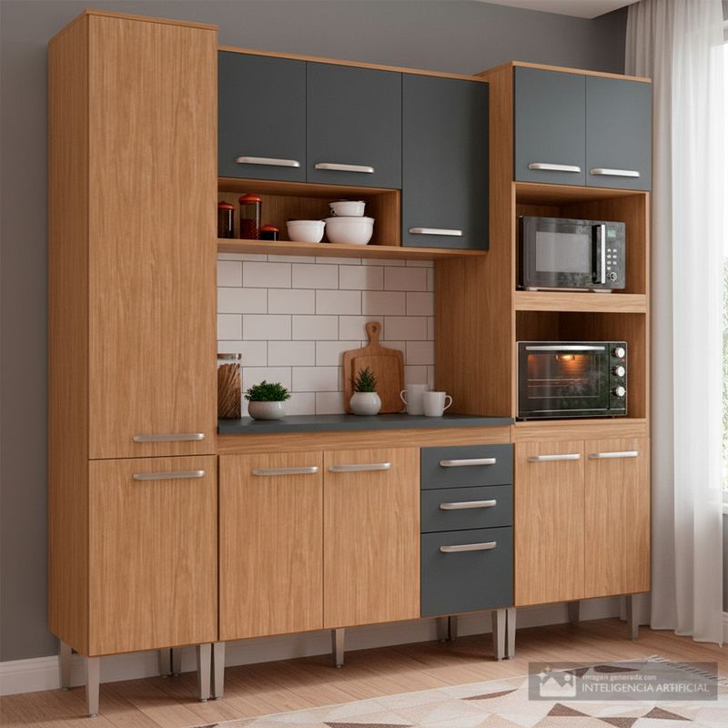 Haz tu cocina más funcional y optimizada con el modelo Bélgica de Casamia. El conjunto consta de 3 piezas: 1 techo de 3 puertas con nicho, 1 mostrador de 3 puertas y 2 cajones y 1 torre caliente de 4 puertas. Las piezas son producidas en MDP, cuentan con manijas en ABS y los cajones cuentan con rieles telescópicos, que brindan un excelente nivel de resistencia y durabilidad. Otro punto a destacar es la altura de 88 cm en la parte superior del mostrador, un diferencial que apunta a traer más comodidad al realizar las tareas.
