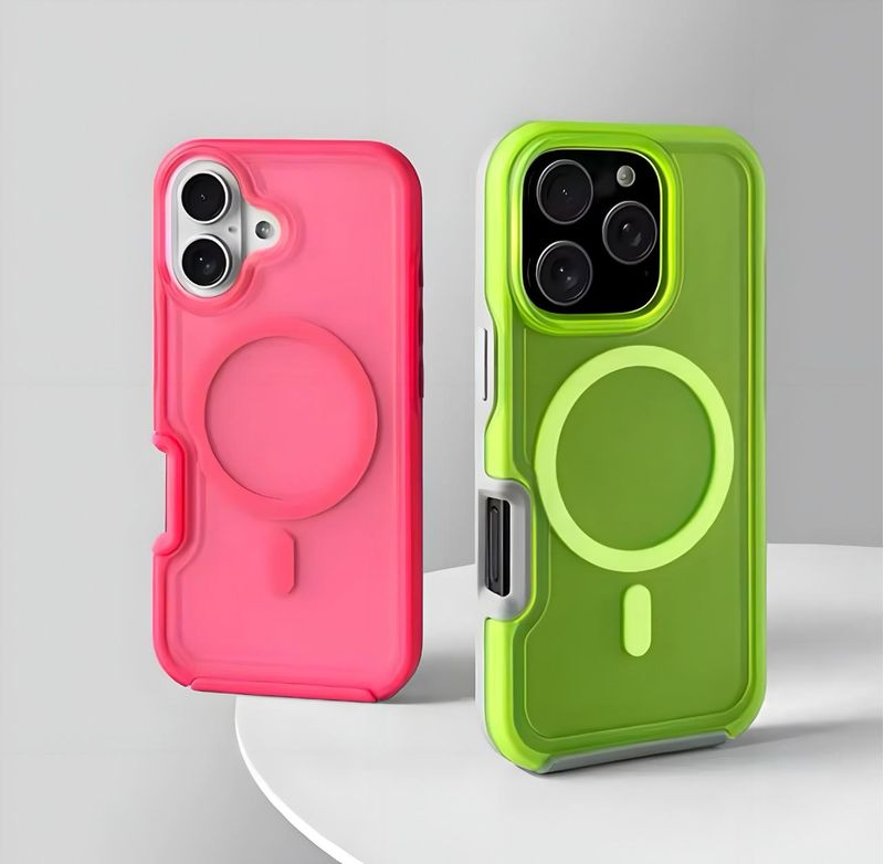 Case resistente a golpes y caídas, en color neón con magsafe.