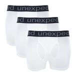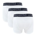 Paquete de 3 boxers de la marca Unexpected, exclusiva de Siman, en diseño sólido en color blanco.