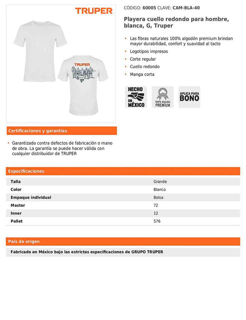 Playera para hombre fabricada en fibras naturales 100% algodón premium, que ofrecen mayor durabilidad, confort y suavidad al tacto. Presenta corte regular, logotipos impresos, cuello redondo y manga corta, ideal para uso diario o como prenda corporativa.