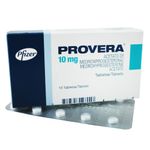 Indicaciones: Indicado en amenorrea primaria y secundaria para fines terapeuticos sangrado uterino disfuncional Contra- Indicaciones: Provera está contraindicado en mujeres con alguna de las siguientes condiciones: 1. Sangrado genital anormal no diagnosticado. 2. Cáncer de mama conocido, sospechado o con antecedentes. 3. Neoplasia dependiente de estrógeno o progesterona conoci