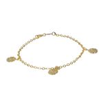 Esta pulsera de enchape de oro 22k combina elegancia y delicadeza con su diseño único. Adornada con dijes en forma de flor, aporta un toque femenino y sofisticado a cualquier atuendo. El acabado en oro le da un brillo dorado que resalta.