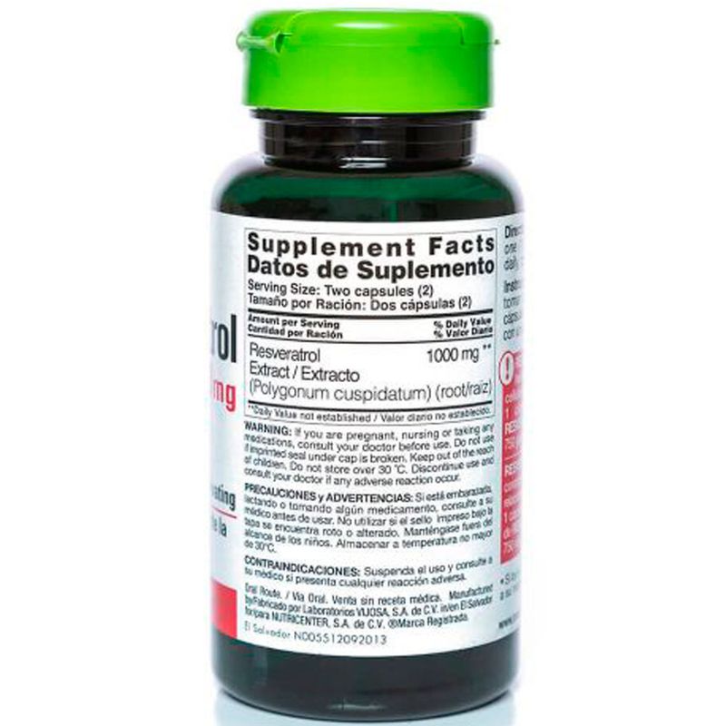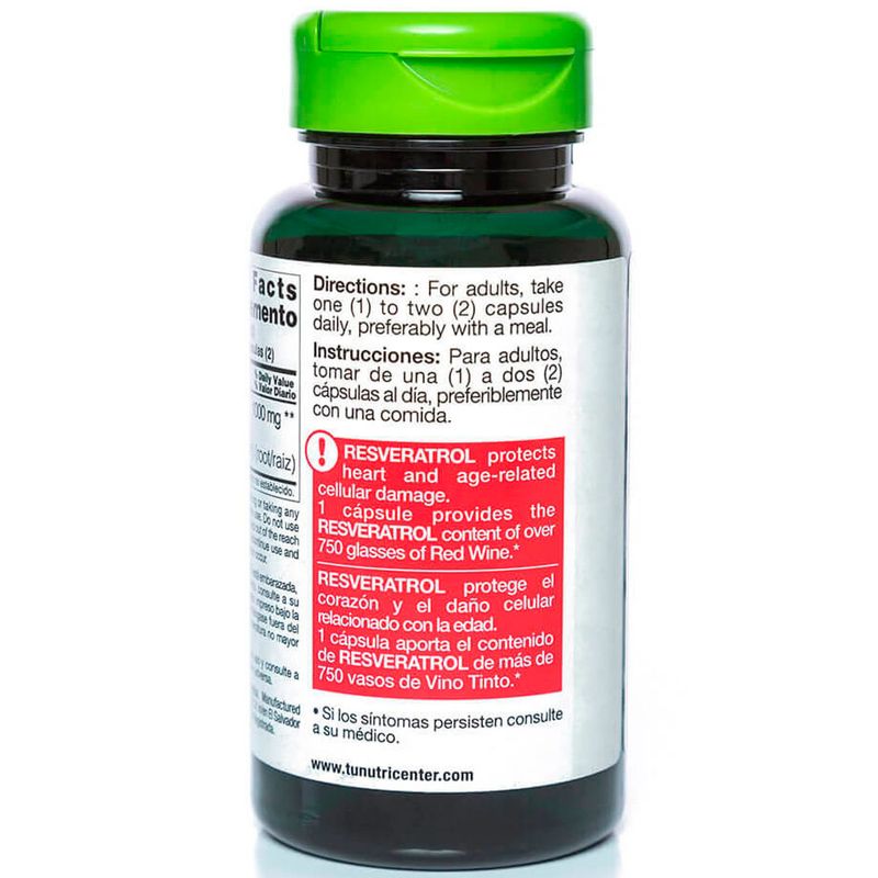 Potente Antioxidante: Cada cápsula de 1000mg de resveratrol ayuda a combatir el estrés oxidativo en el cuerpo, protegiendo tus células y apoyando la salud en general.
