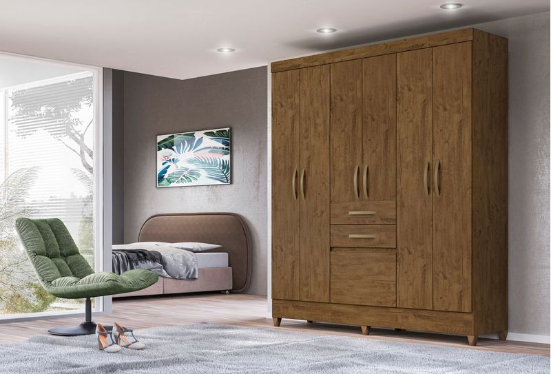 Amplio espacio de almacenamiento: Con 6 puertas, 2 cajones centrales y múltiples compartimentos internos, ofrece lugar suficiente para organizar ropa, calzado, accesorios y hasta ropa de cama. Su interior está diseñado estratégicamente para maximizar la capacidad.
