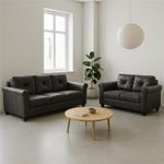 Dale un toque moderno y elegante a tu hogar con esta increíble sala modelo Estocolmo. Con un diseño contemporáneo y materiales de alta calidad, esta sala incluye un sofá de tres plazas y otro de dos plazas, ambos tapizados en resistente vinyl, que brinda un acabado sofisticado y fácil de limpiar.