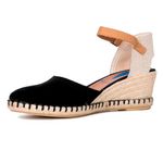 Sandalias de plataforma para mujer, color negro, estilo casual, con cierre de hebilla ajustable, fácil de poner y quitar. Parte superior en material de alta calidad. Detalle de marca en lateral. Puntera: Redonda. Plantilla confort para una amortiguación equilibrada y suave. El talón abierto le da un toque moderno. Suela con diseño de tejido artesanal con textura trenzado. ¡Estilo que combina con todo, te brinda comodidad y seguridad durante todo el día!