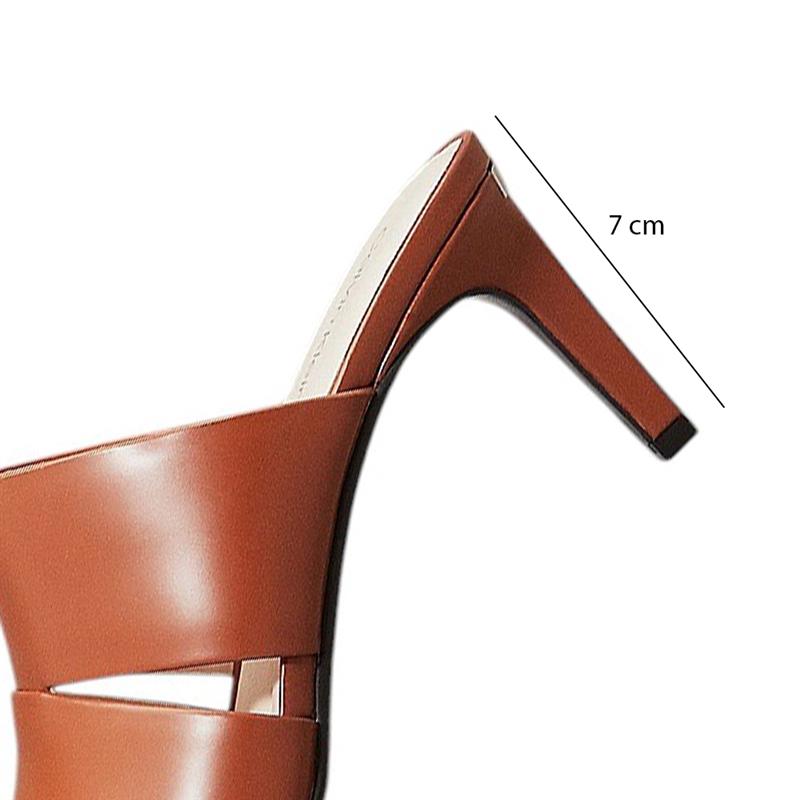 Esta sandalia de Calvin Klein combina diseño moderno con materiales resistentes. Su parte superior de cuero suave, complementada con un refuerzo elástico, ofrece un ajuste cómodo y flexible. El forro de cuero garantiza una sensación agradable al contacto con la piel.