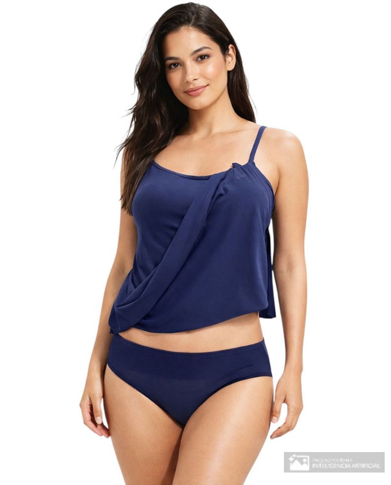 Traje estilo tankini. Prenda que se caracteriza por incluir un top que cubre por completo el abdomen y una parte inferior de short, ideales para favorecer la silueta. Combina con salidas de baño para lucir un look playero. Top diseño sólido. Cuello redondo y de tirantes. Bikini diseño sólido, de cintura media.