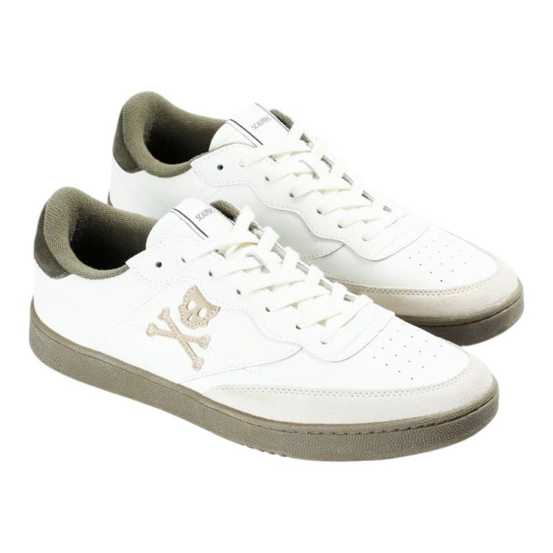 Luce estilo y comodidad con los zapatos deportivos casuales Scalpers para hombre, un calzado versátil en blanco con detalles en gamuza beige que se adapta a cualquier ocasión. Su diseño moderno con logo bordado en el lateral aporta un toque distintivo, mientras que el cierre de cintas permite un ajuste seguro y cómodo en cada paso.