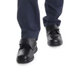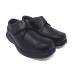 Zapatos de vestir escolares para niño de 4 a 14 años, en diseño sólido color negro con detalles de doble costura que destaca la calidad de los materiales de su confecció. Destaca por su resistencia al desgaste del uso diario. Parte superior de cuero. Forro interno suave al tacto. Plantilla confort, ideal para adaptarse a las aventuras que tu pequeño vivirá día con día. Suelas antideslizantes para proporcionar un agarre seguro sobre diferentes superficies. Fácil de poner y quitar con cierre de velcro.